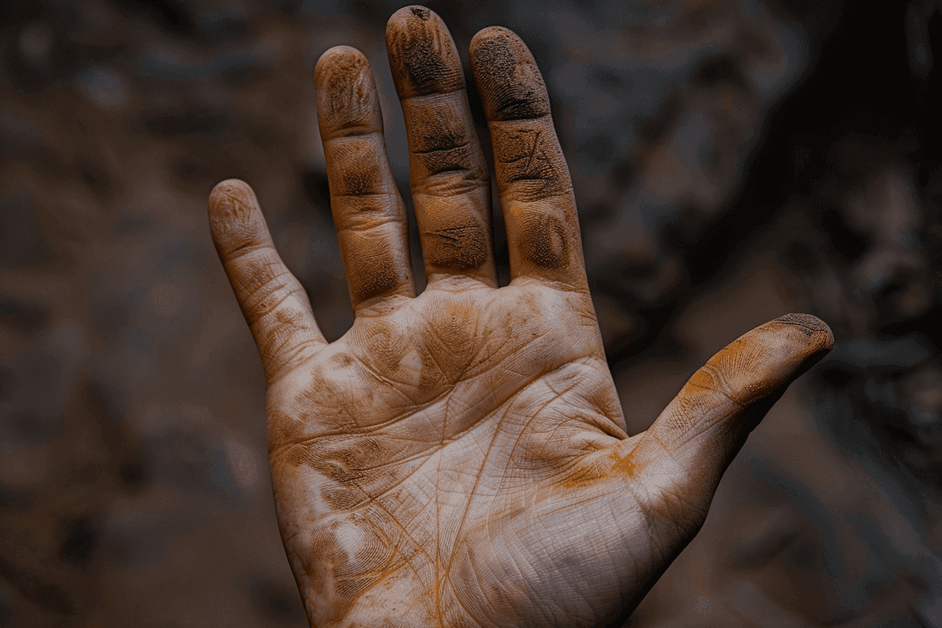 A carpenter’s hands provide a clear example of how hard work shapes palm lines. The deep, rough lines, calluses, and effort lines all tell a story of dedication and physical labor.